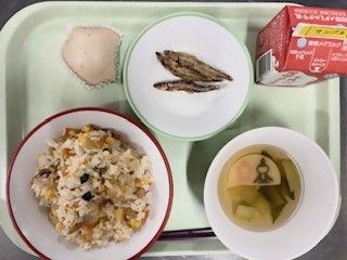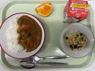3月3日(火) 2026/03/03 【季節の献立:桃の節句】 ちらし寿司 きびなごのからあげ すまし汁 いちご蒸しパン 牛乳 3月2日(月) 2026/03/02 【リクエスト給食】 チキンカレーライス わかめとキャベツのサラダ デコポン 牛乳 2月27日(金) 2026/02/27 ごはん 麩入り肉じゃが すまし汁 ネーブルオレンジ 牛乳